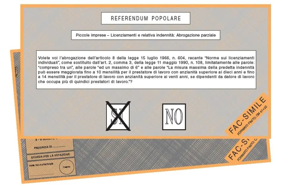 Il SECONDO QUESITO riguarda la cancellazione del tetto all’indennità nei licenziamenti nelle piccole imprese.