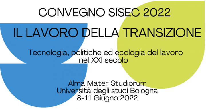 La SISEC (Società Italiana di Sociologia Economica) terrà il suo sesto convegno presso l'Alma Mater Studiorum, Università di Bologna, dall’8 all’11 giugno 2022, dal titolo: “Il lavoro della transizione. Tecnologia, politiche ed ecologia del lavoro nel XXI secolo”.
