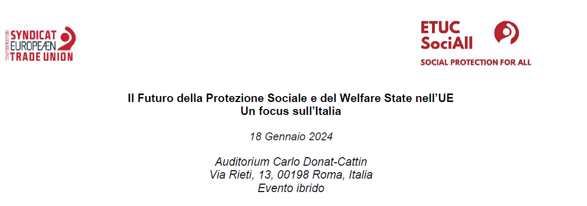Giovedì 18 gennaio si terrà a Roma il convegno organizzato dalla Ces "Il Futuro della Protezione Sociale e del Welfare State nell’UE. Un focus sull’Italia".