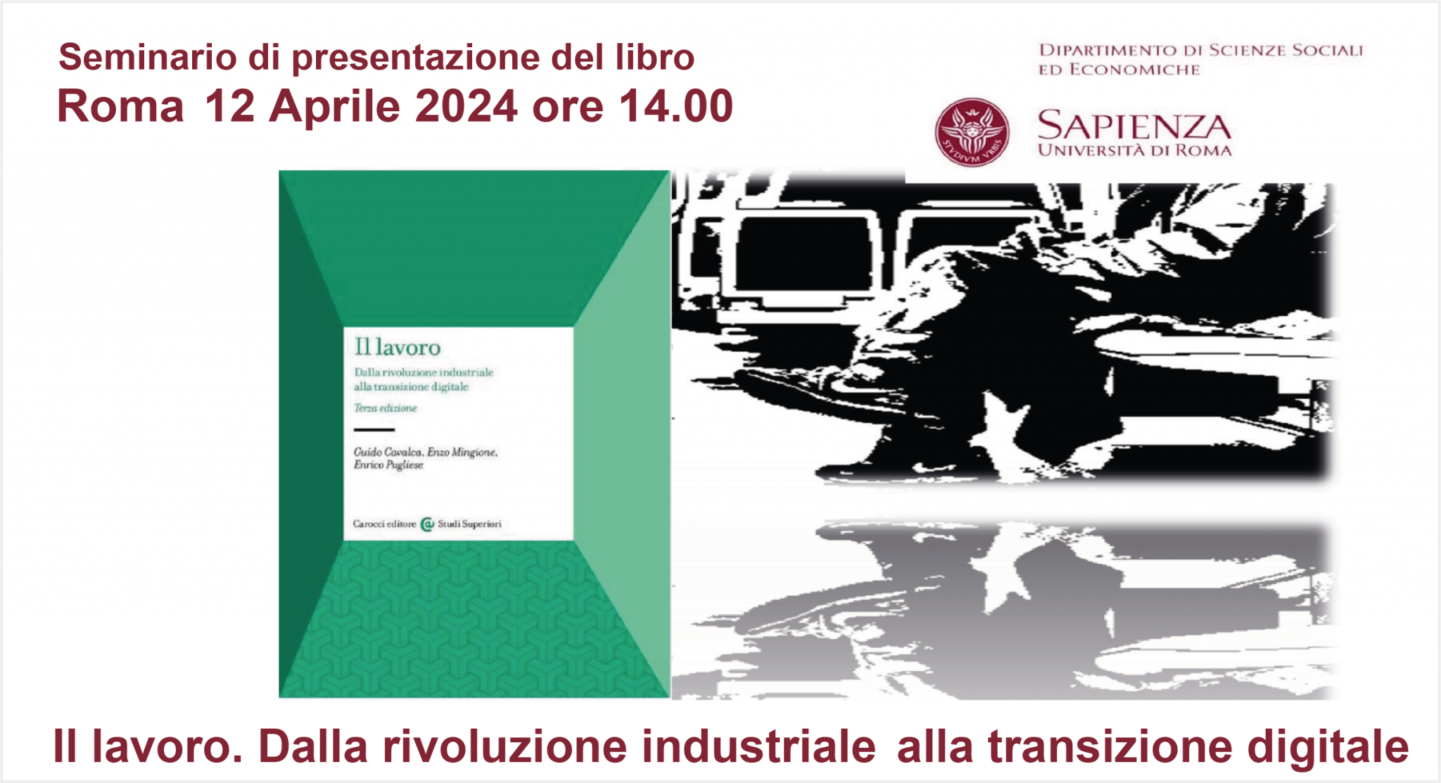 Si svolgerà il giorno 12 aprile alle ore 14 presso l’Aula Gismondi dell’Istituto di Mineralogia di Roma, il seminario di presentazione del libro “Il lavoro. Dalla rivoluzione industriale alla transizione digitale” di Cavalca, Mingione e Pugliese, alla sua terza edizione.