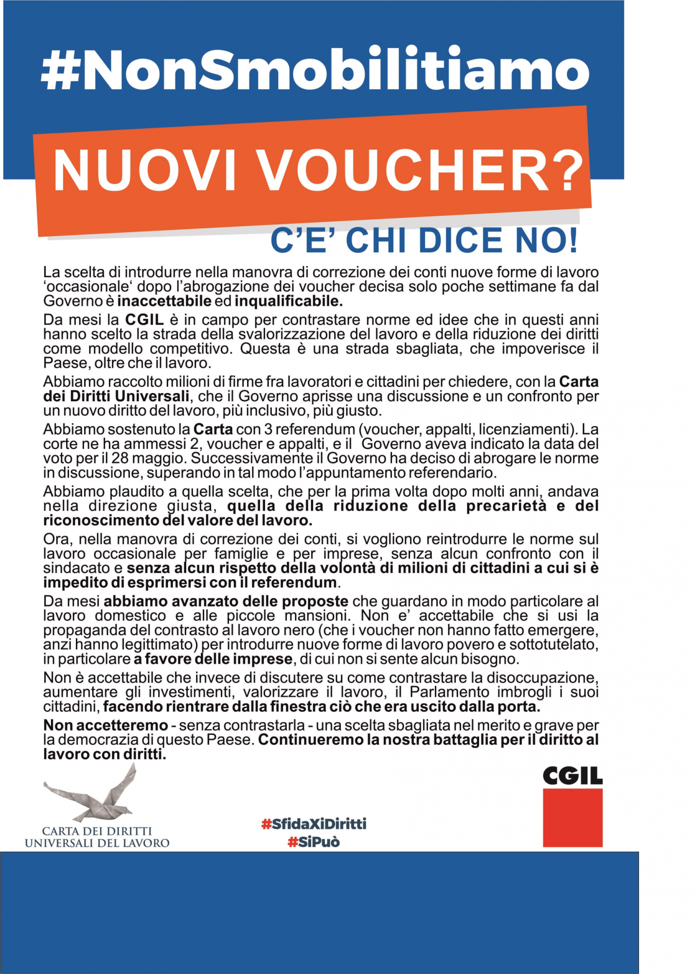 CAMUSSO: I NUOVI VOUCHER SONO SOLO UN GRAN PASTICCIO CHE RIDUCE ANCORA DI PIU’ I DIRITTI. NOI NON CI FERMEREMO