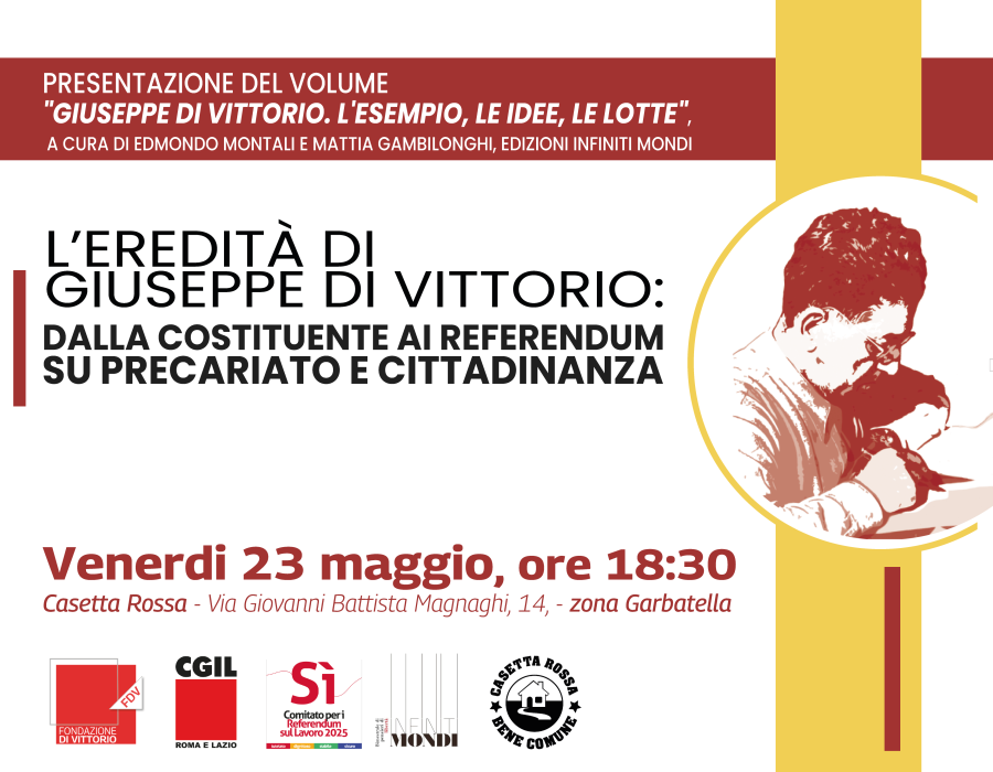 Ci vediamo a Casetta Rossa venerdì 23 maggio alle 18:30 per discutere dei referendum a partire dal libro “Giuseppe Di Vittorio. L'esempio, le idee, le lotte” a cura di Edmondo Montali e Mattia Gambilonghi della Fondazione Giuseppe Di Vittorio, edizioni infiniti mondi.