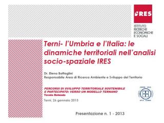 01/2013 Terni- l’Umbria e l’Italia: le dinamiche territoriali nell’analisi socio-spaziale