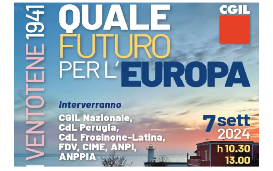 Ventotene, luogo simbolo della nascita del progetto europeo, ospiterà il 7 settembre 2024 l'iniziativa dal titolo "Quale futuro per l'Europa". L'evento, promosso dalla CGIL nazionale, si terrà dalle ore 10.30 alle 13.00 presso la sala consiliare del Comune di Ventotene. Il dibattito partirà dal celebre Manifesto di Ventotene per riflettere sull'eredità dei padri fondatori dell'Europa, su cosa rappresenta oggi l'Unione Europea, e su quali prospettive si auspicano per il futuro, con particolare attenzione alle nuove generazioni e alle realtà territoriali.