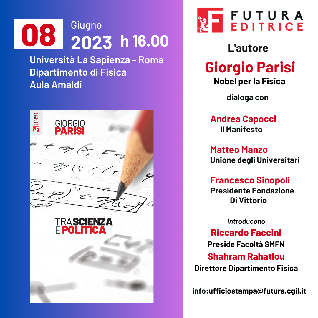 Il premio Nobel, autore del volume "Tra Scienza e Politica", pubblicato da Futura Editrice, sarà presente all'iniziativa in programma giovedì 8 giugno ore 16, presso il Dipartimento di Fisica dell'Università Sapienza di Roma.